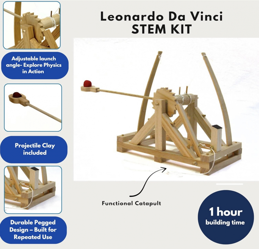 Introduce children to real physics, engineering, and hands-on building with this wooden catapult inspired by Leonardo da Vinci’s original mechanical sketches. This engaging STEM kit lets children assemble a fully functional catapult and explore force, tension, and trajectory through play and experimentation. Perfect for home learning, STEM programs, classrooms, and curious builders who love projects that really work.