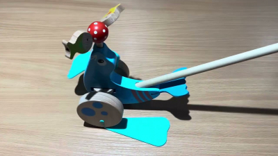 The cute seal balances not only a ball, but also two fish. These start to turn as soon as you start pushing.